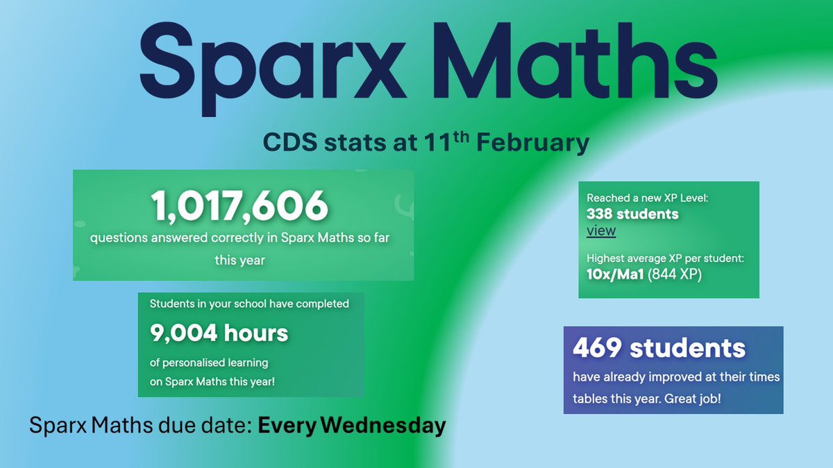 Here are this week's Sparx Maths leaderboard stats from our maths homework platform!