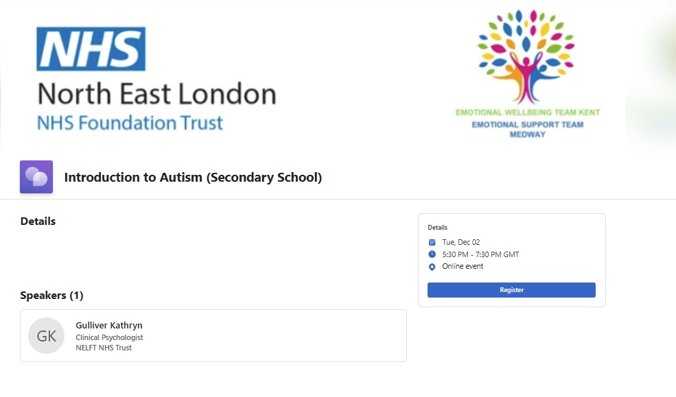 The Emotional Wellbeing Team are running a free online session for parents wishing to understand more about autism. This takes place on 2 December at 5:30-7:30pm. If you are interested in signing up, please do so via this link: events.teams.microsoft.com/e…