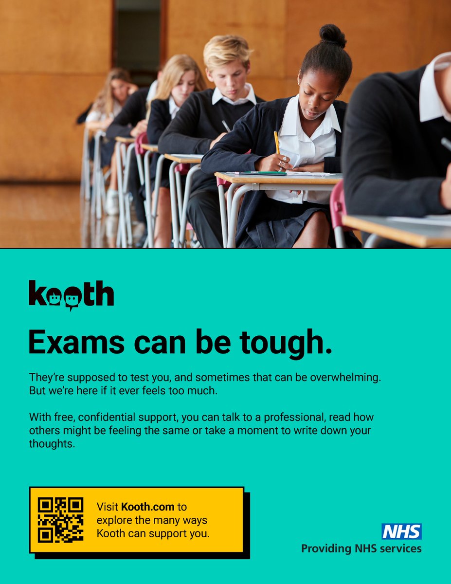 With end‑of‑year exams approaching, support is available. Pupils can access Kooth for free wellbeing resources and and anonymous chat support until 10pm daily.